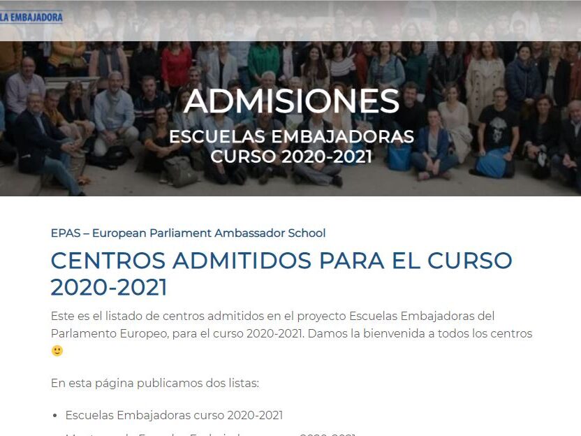 Nuestro colegio forma parte del Programa de Escuelas Embajadoras del Parlamento Europeo para el curso 2020-21, en el que nuestros alumnos del centro se ven beneficiados por la posibilidad de participar en numerosas actividades organizadas por el Parlamento Europeo, y ésta que os ofrecemos es una de ellas. Se trata de un CONCURSO DE FOTOGRAFÍA…