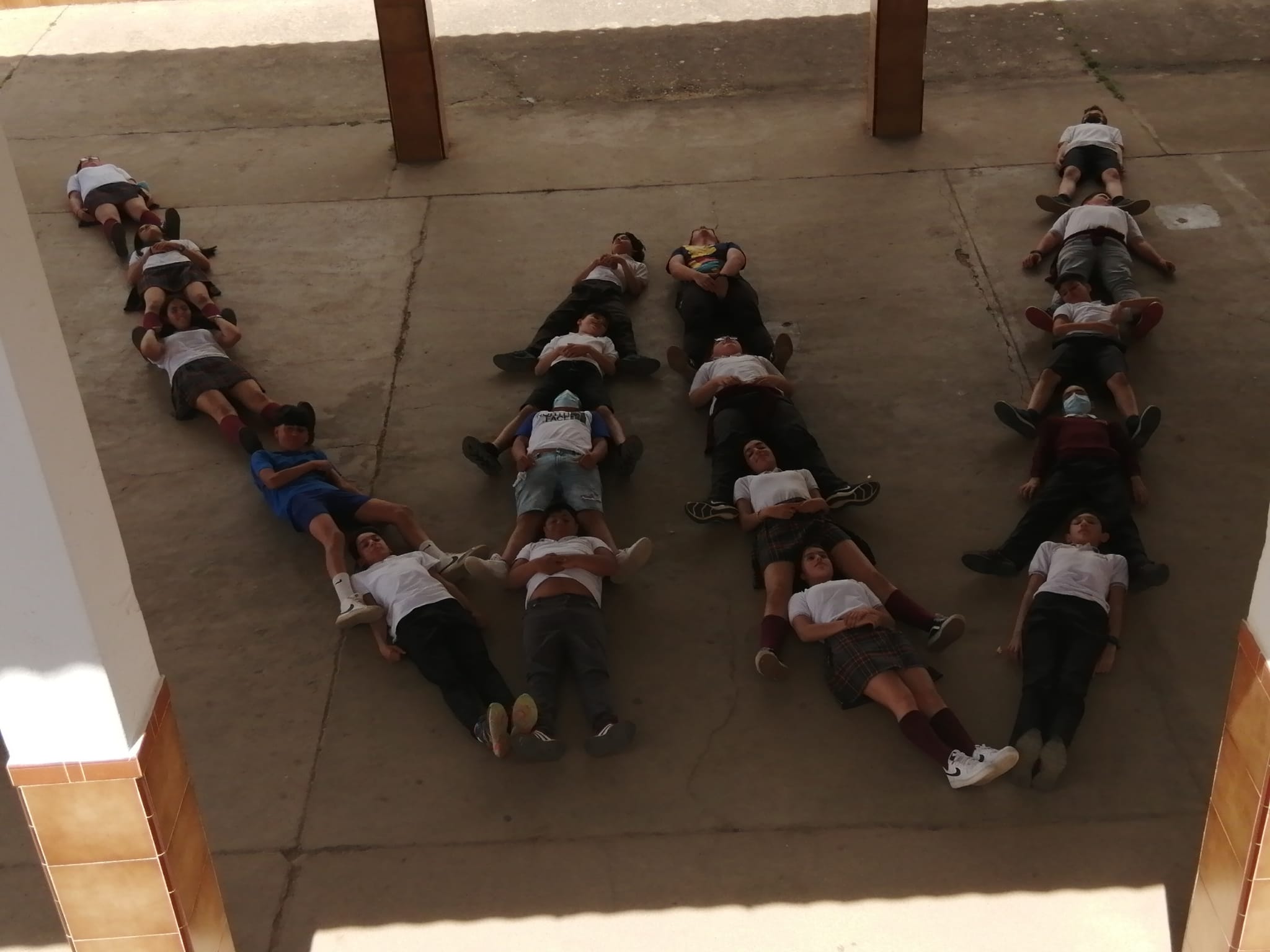 En esta actividad del Día de Europa hemos querido plantear a los alumnos un reto diferente a lo habitual. Se trata de que los alumnos formen con sus cuerpos la letra que les toque a su clase. Podrán hacer la letra con total libertad y creatividad con sus cuerpos, creando letras humanas